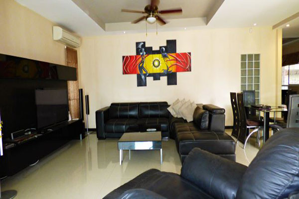 This village is located in South Pattaya with an easy access into town. This home comprises 4 bedrooms all with en-suite bathrooms, spacious and open plan living area with European style kitchen, guest toilet, private swimming pool, covered car parking. This stylish bungalow also has a CCTV security system installed, electric gates, WiFi internet and full A/C. Restaurants, shops, Laundry, massage, 7-eleven, Family Mart and fresh food markets are just a few minutes’ walk from the house. Under Thai name with Tax & Transfer fees to be split 50/50.