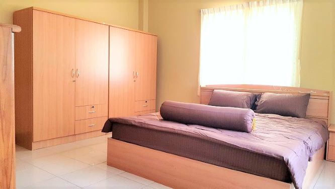 Pattaya Tropical Village located on the East side of Pattaya, between Siam Country Club Road, and Soi Nern Plabwahn,just 3Km from Sukhumvit Road. The village is quiet and well managed and maintained, it is a residential estate with wide roads, 24 hour security, communal garden and large swimming pool, children play area, fitness room. The house is fully furnished and has Internet and Cable TV, 3 bedrooms with air-condition, 2 bathrooms, 1 large sitting and dining room with air-condition, European kitchen, 2 flat-screen TV, washing machine, refrigerator with freezer, oven, microwave, cooking plate. Rented out until end of Feb 2019. For more information please contact us.
