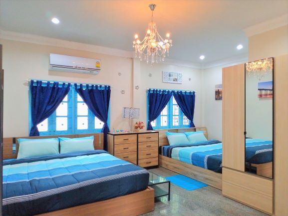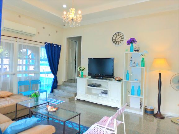 A lovely house for rent in Jomtien on 300 meter walk to the Jomtien Beach, plot size 420 sq.m living space 250 sq.m with 3 bedrooms, 2 bathrooms open living room with dinning tale, pool table and separate kitchen room fully equipment, there are cable TV, internet and CCTV around the house, 2 car park. This house it is in the Village corner house a few minute walk to Jomtien beach near by shops, Restaurant, Hotels and taxi route. Accept short term and long term. For more information or viewing please contact us.
