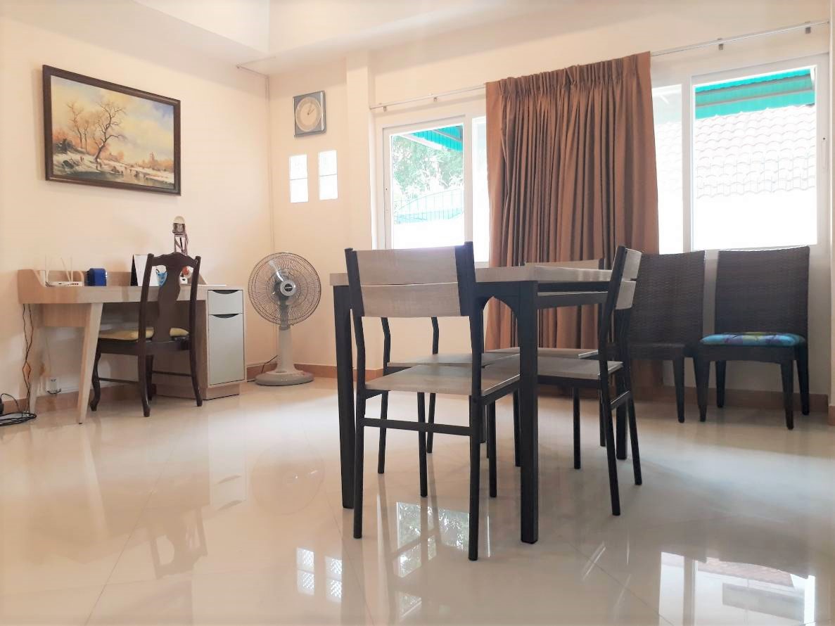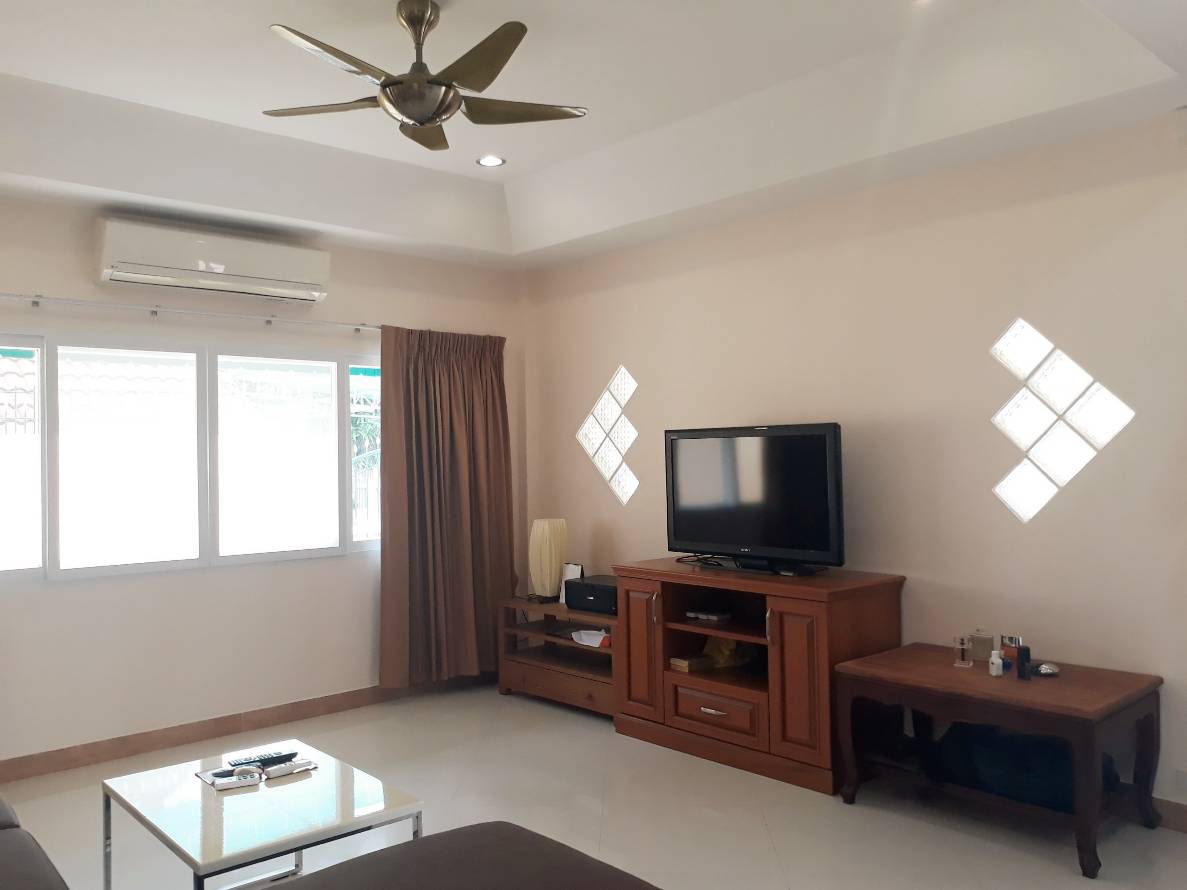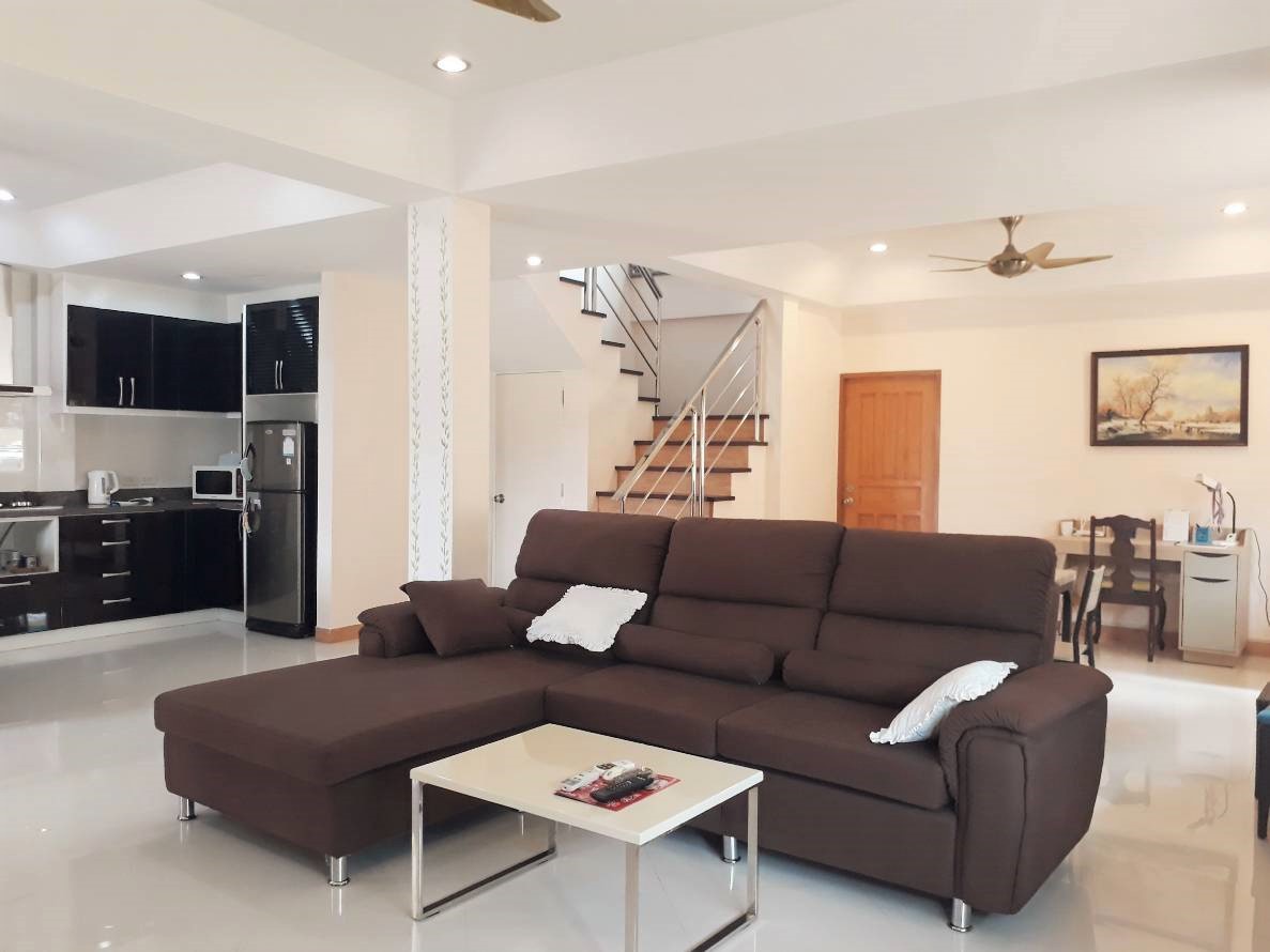 Reduce in price from 14.0 mil to 12.5 mil. This is a stunning family house only 200 meter to Jomtien beach, plot size 304 sq.m living space 220 sq.m 2 story house with 3 bedrooms 3 bathrooms and has 2 kitchen and Garden. The house will selling include fully furnished as seen. Facilities : Swimming pool, 24/7 security, Tennis court. Bear by: Taxi route, Beach, Market, Hotel, Shops, laundry shops, Hair salon. Under Thai ownership. Transfer fee 50/50. For more information or viewing please contact us.