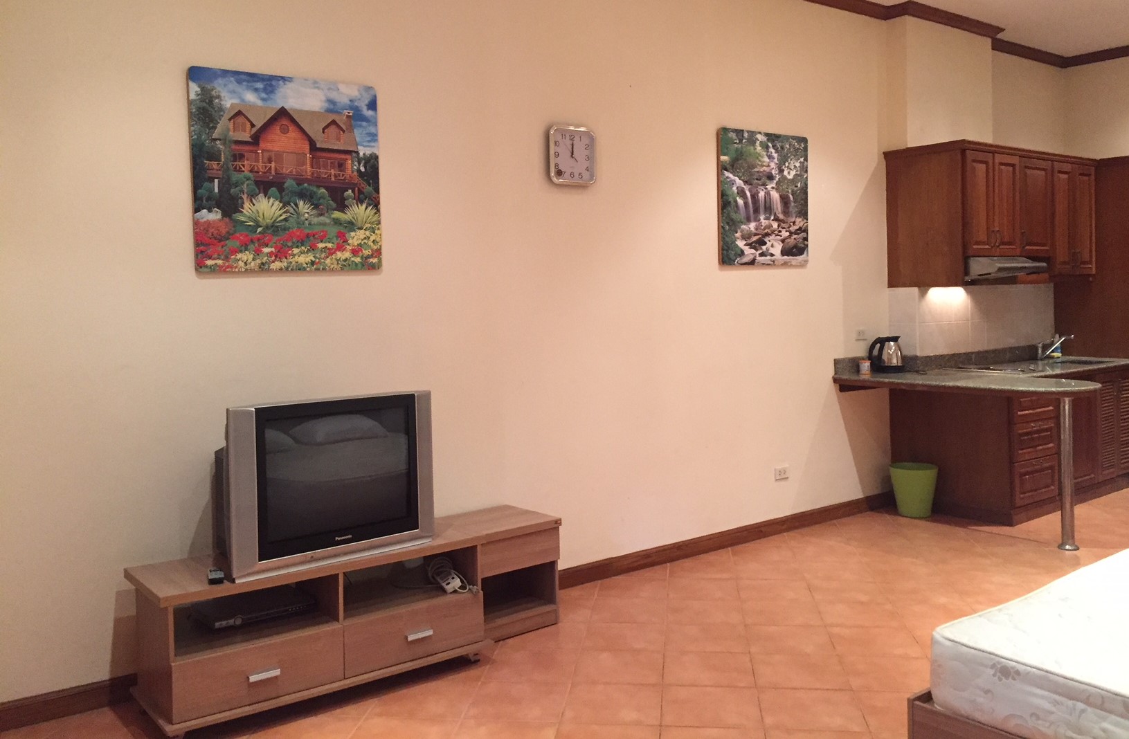 This spacious studio apartment is situated on the 1st floor Jomtien Side of the building 48 sq.m. The condo is fully furnished It features a fitted European kitchen, air conditioning, hot water bathroom. The building has 24 hour security, large communal swimming pool and direct beach access. There are plenty of parking spaces for cars and covered parking spaces for motorbikes. The project is very well managed and maintained. Minimum 12 months contract. For more information or viewing please contact us.