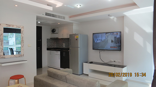 Avenue Residence building B, located in a very central and popular location in South Pattaya Soi 15 (between Soi Bua-Kao and 2nd. Road, near the Pattaya Avenue Megastore, The Urban Condominium and the Centara Avenue Condominium). The room has been also provided with a new washing machine, so that now the tenants can do their laundry staying at home and without paying extra money to a laundry shop. Details: 3rd.floor, 35 sqm., recently fully and very elegantly renovated, 51" inches LED TV, washing machine, spacious bathroom, wide balcony with a nice city view on a quiet small soi (view on some big trees, with no bars, no noise, no traffic); communal swimming pool, well equipped fitness center, sauna, underground car park, 24 hours security, CCTV Security system. For more information or viewing please contact us.