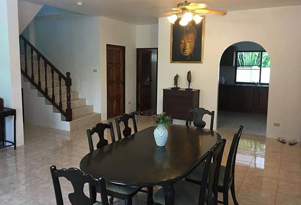 This Village located just 5 minutes walk to Jomtien Beach and about 5 minutes drive to Pattaya City. The house have 4 bedrooms 3 bathroom with private swimming pool european kitchen and fully furnished. This house is a good holiday home for a family and will be rented out fully furnished including a fitted European kitchen, washing machine, private off road parking, and plenty of space around the house to relax outside. Just in front of the Village there are many restaurants, shops, massage etc, and is also along the taxi routes throughout Jomtien and Pattaya