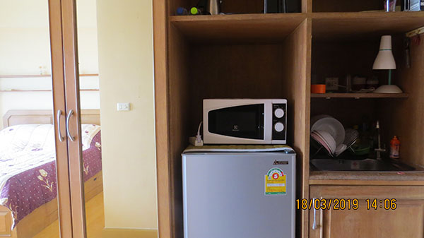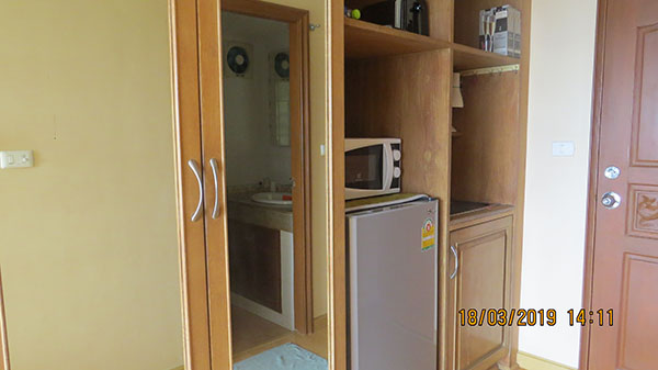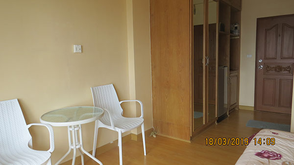 Pattaya Condotel Chain is only 400 meter from the Jomtien Beach and enjoys cool sea breezes and a quiet. Just 10 minutes to Pattaya City. This studio apartment is on the 7th floor 26 sq.m, built-in wardrobe, bathroom, no kitchen and the balcony fully furnished as seen. The building has 24 hour security, communal swimming pool, key card access and gym. Offered for long term rental of minimum 6-12 months. There is no TV right now but will be install. For more information or viewing please contact us.