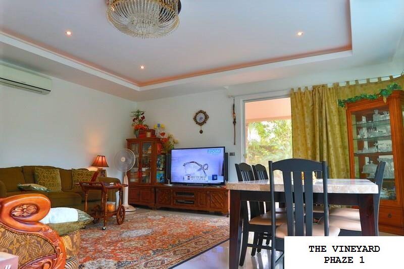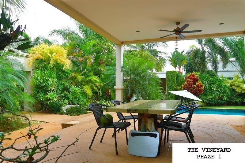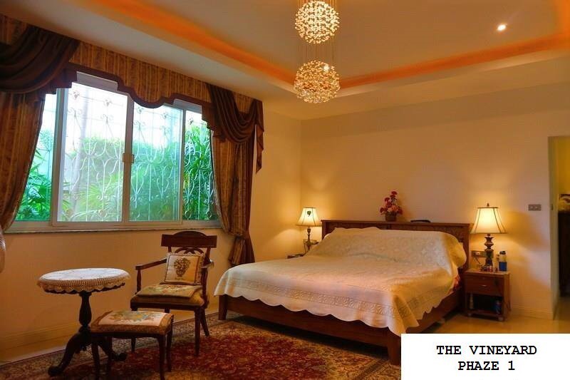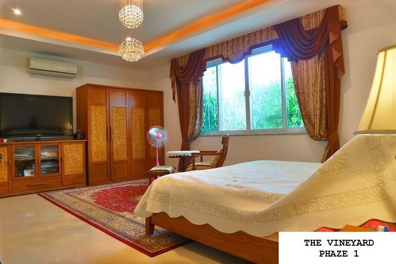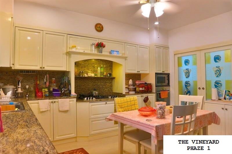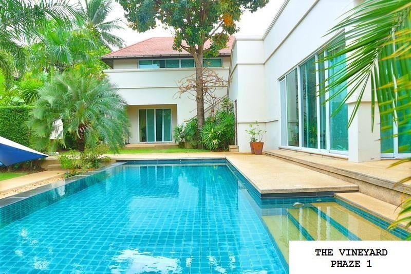 The Vineyard Phase 1 Village. This beautiful 4 bedrooms 4 bathrooms pool villa plot size 200 sq.wah land plot or 800 sq.m. with 260 sq.m. living space. The house has a stunning private swimming pool and gardens. It is fully furnished to a high standard and ready to move in. There are built-in European kitchen and all appliances, spacious living and dining areas overlooking the swimming pool, all good sized bedrooms with bathrooms and hot water shower. Air-conditioning throughout, washing machine. Covered parking spaces. Village facilities: 24/7 security and fitness center. The Vineyard 3 is located in Pong of East Pattaya, located not far from Mabprachan Lake, Highway 7 and 36. Close to many local amenities like restaurants, shops, fresh market etc. Under Thai Company. For more information or viewing please contact us.