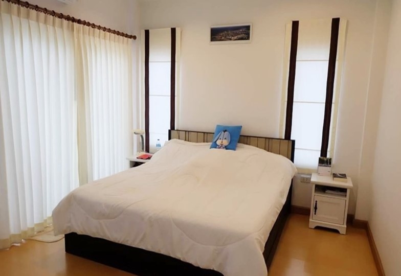 Patta Village located in the East Pattaya soi Siam Country Club. This is 228 sq.m plot size and 200 sq.m living space a 2 storey house with 3 bedrooms 3 bathrooms fully furnished. European kitchen open living area cable TV and internet are available. Fully A/C balcony private parking space electric fence installed along the compound wall. A luxury clubhouse combined with swimming pool fitness center children play area and excellent 24/7 security. Access control system infrared CCTV. Located a shot distance to local market many convenience stores restaurant school. 10 to 15 minute drive to Central Pattaya. Under Thai name and transfer fee 50/50. For more information or viewing please contact us.