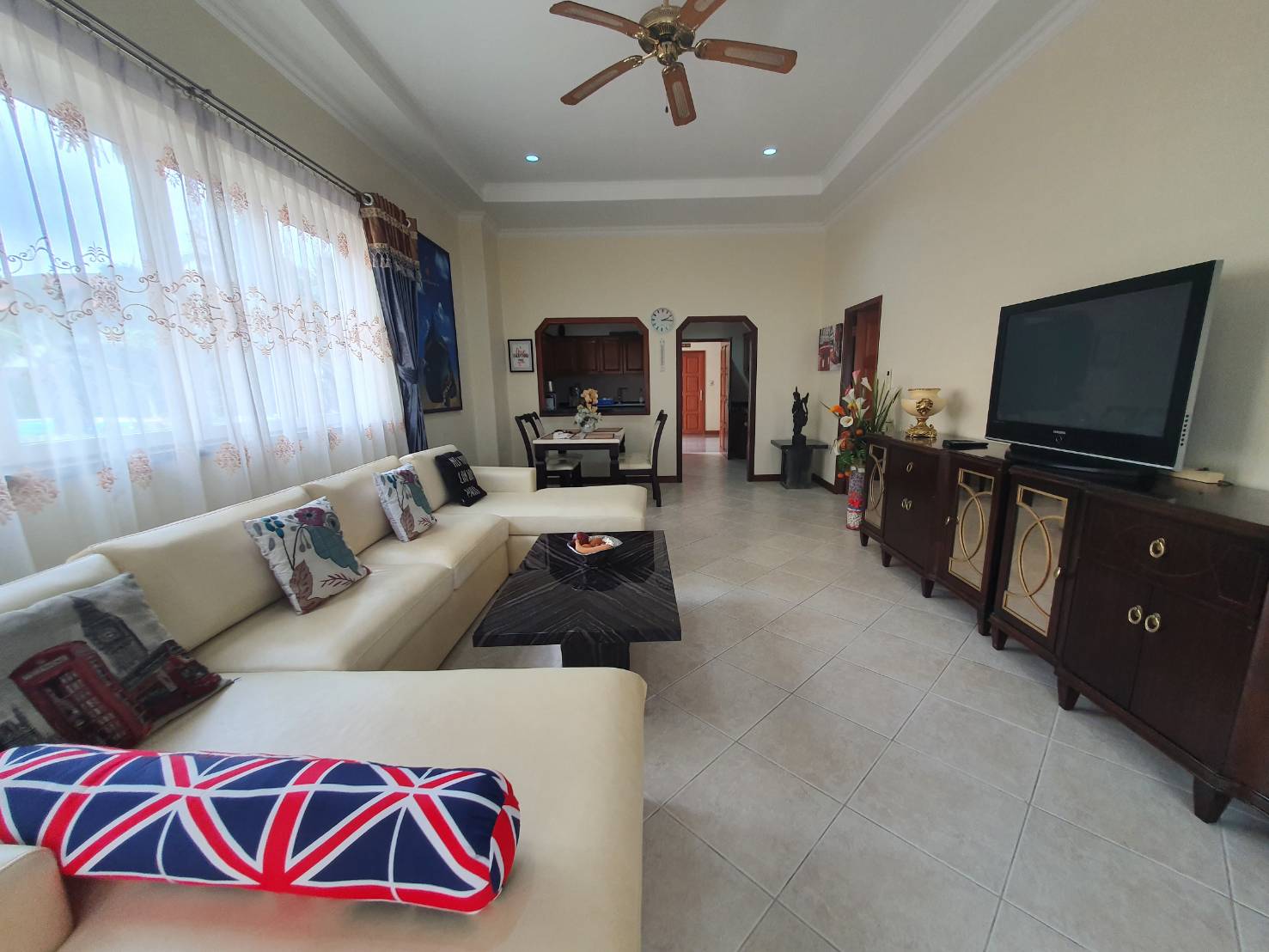 View Talay Residence 2 Located in Jomtien second road. this is 1 bedroom unit is situated in a well maintained low rise building and walking distance to the well-known Jomtien Beach, restaurants, local markets, shops and other local amenities. The unit is 96 sq.m 1 bedroom has a large European kitchen with washing machine and open plan living room with dining area. There is also a large bathroom with bathtub and walk in shower. Both the lounge and bedroom lead out onto a large balcony. This unit also offer for rent 30,000/month for 3 months. 25,000/months for 6 months and 20,000/month for 12 months contract. For Sale at 3.95 Mil. Under Thai Company ( selling include ). For more information or viewing please contact us.