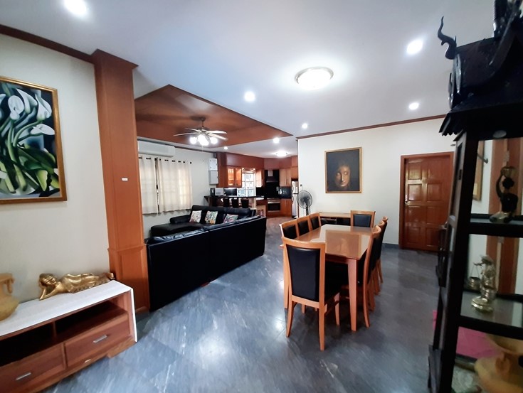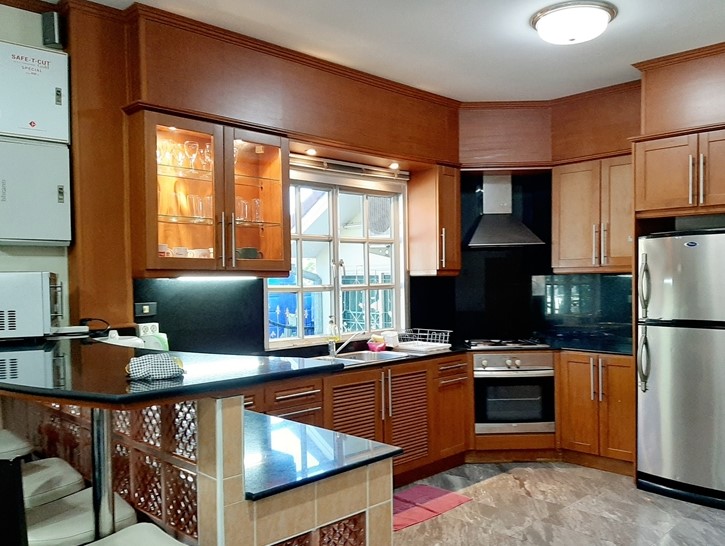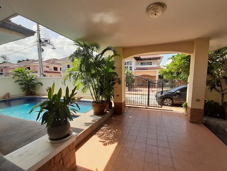 View Point Village located in Soi Chaiyapuek 1 only a few minute to Sukhumvite road and Jomtien Beach. This house is 344 sq.m plot size and 300 sq.m of living space with 5 bedrooms 5 bathrooms. European kitchen counter bar and open living area this house selling with fully furnished cable TV internet and fully A/C. The house has a private swimming pool and cover car parking. Only 5 minute to Makro Tesco BigC Outlet mall and the night market and next to international school. 10 Minute to Bangkok Hospital 7 minute to Jomtien Beach. Under Thai Company ownership. For more information or viewing please contact us.