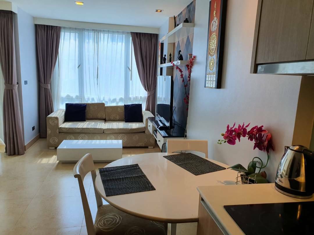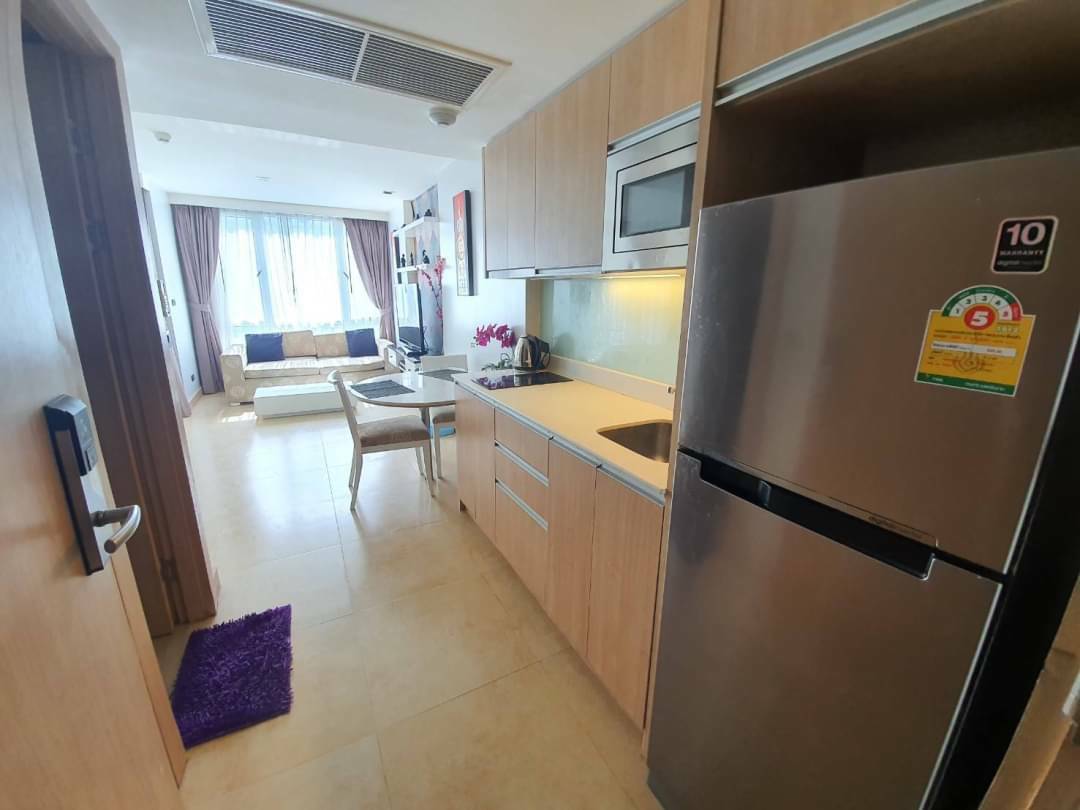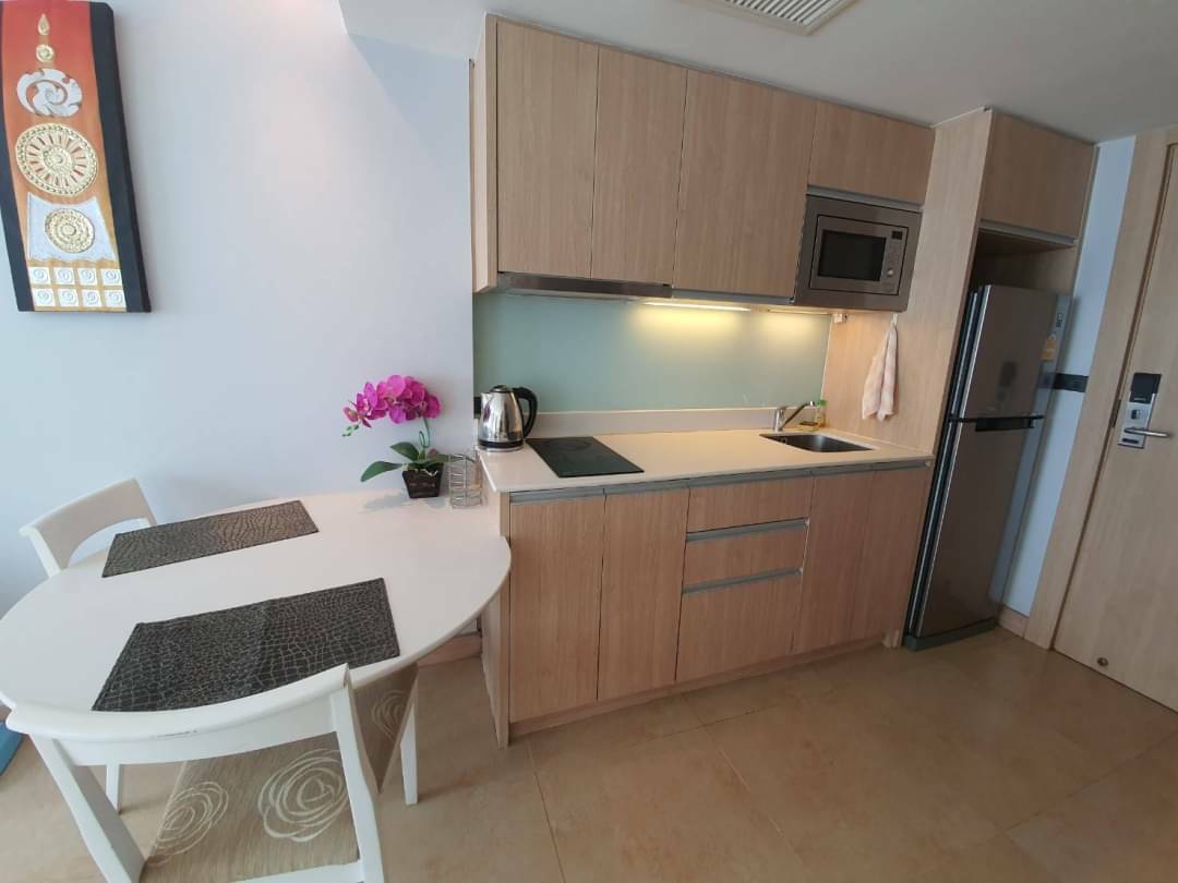 Rented Until 30.06.2025. This modern style studio condo apartment on the 2nd floor with pool view has a living area including the balcony of 38sq.m The condo is fully furnished and decorated to good western standards including a built in European kitchen, a comfortable living area built in wardrobe and fully furnished. Facilities of the complex: 24/7 security and CCTV, key card access, lobby area, fitness room, communal swimming pool, children’s playground, underground parking, cleaning service, etc. For more information please contact us