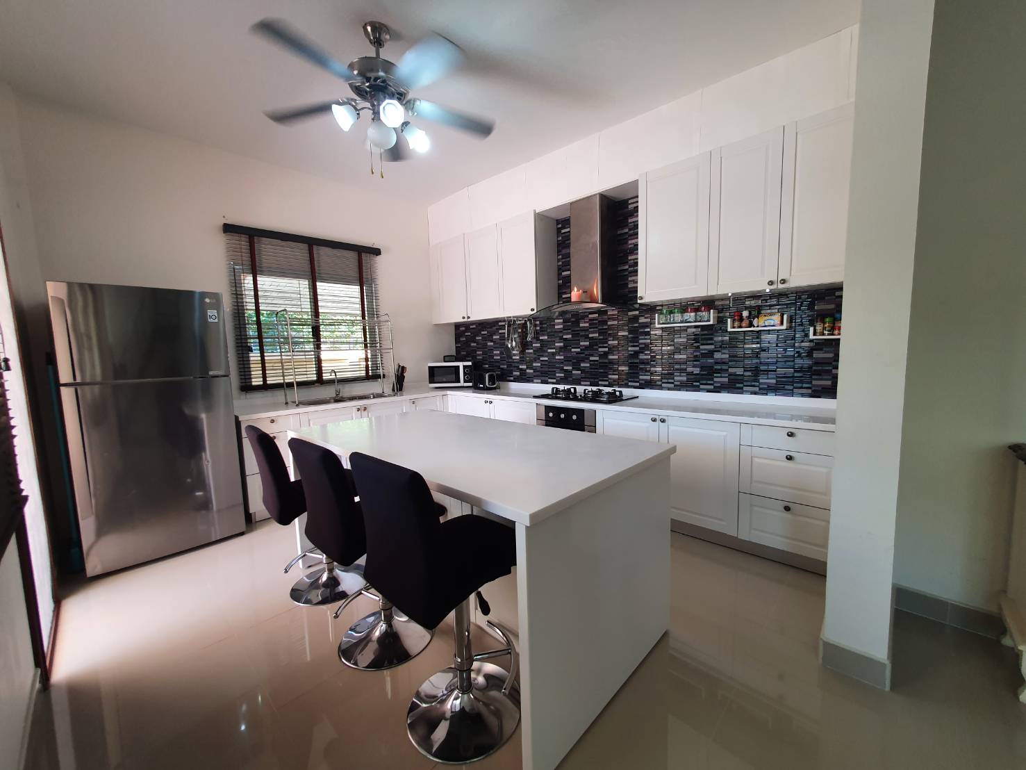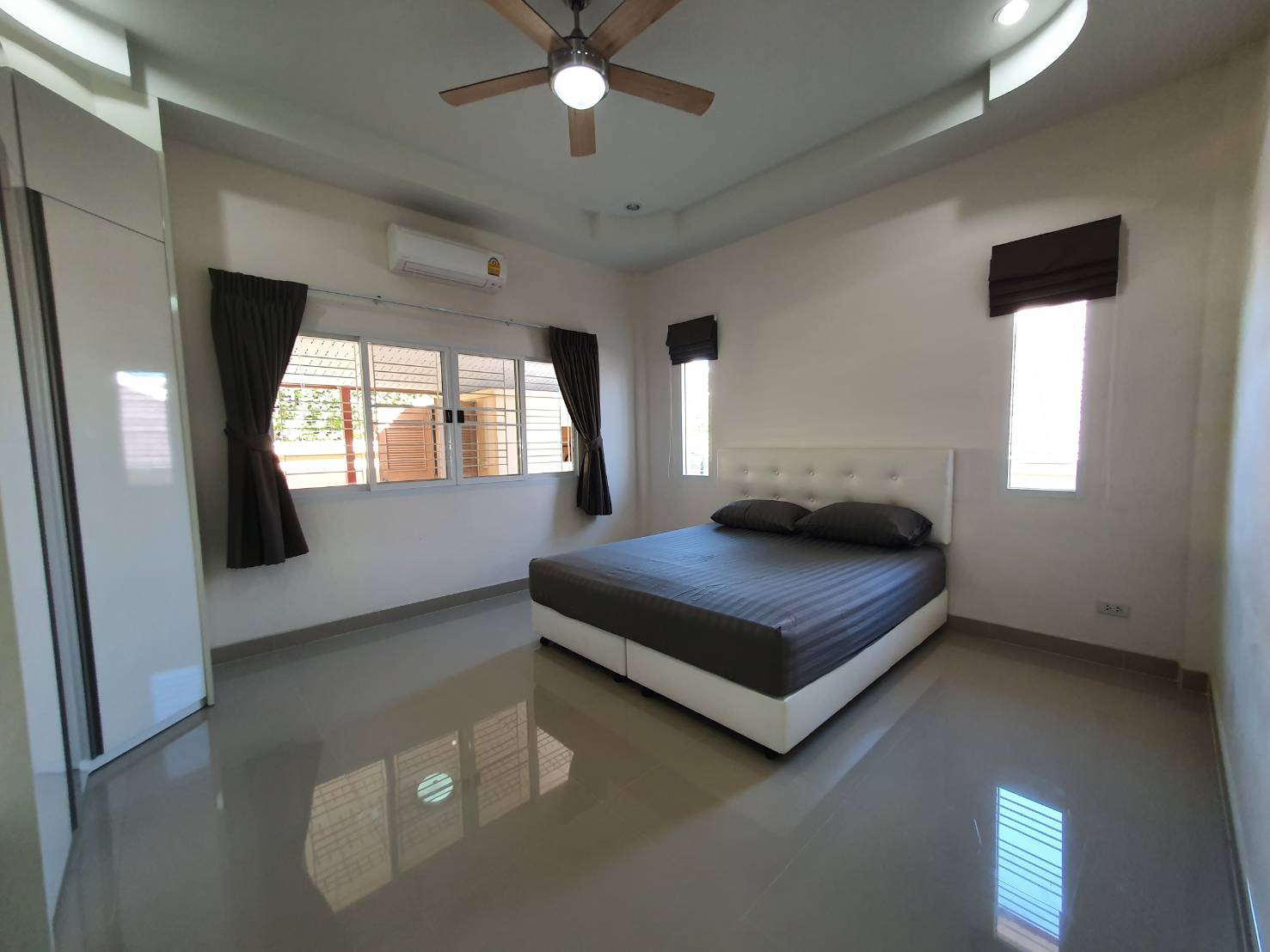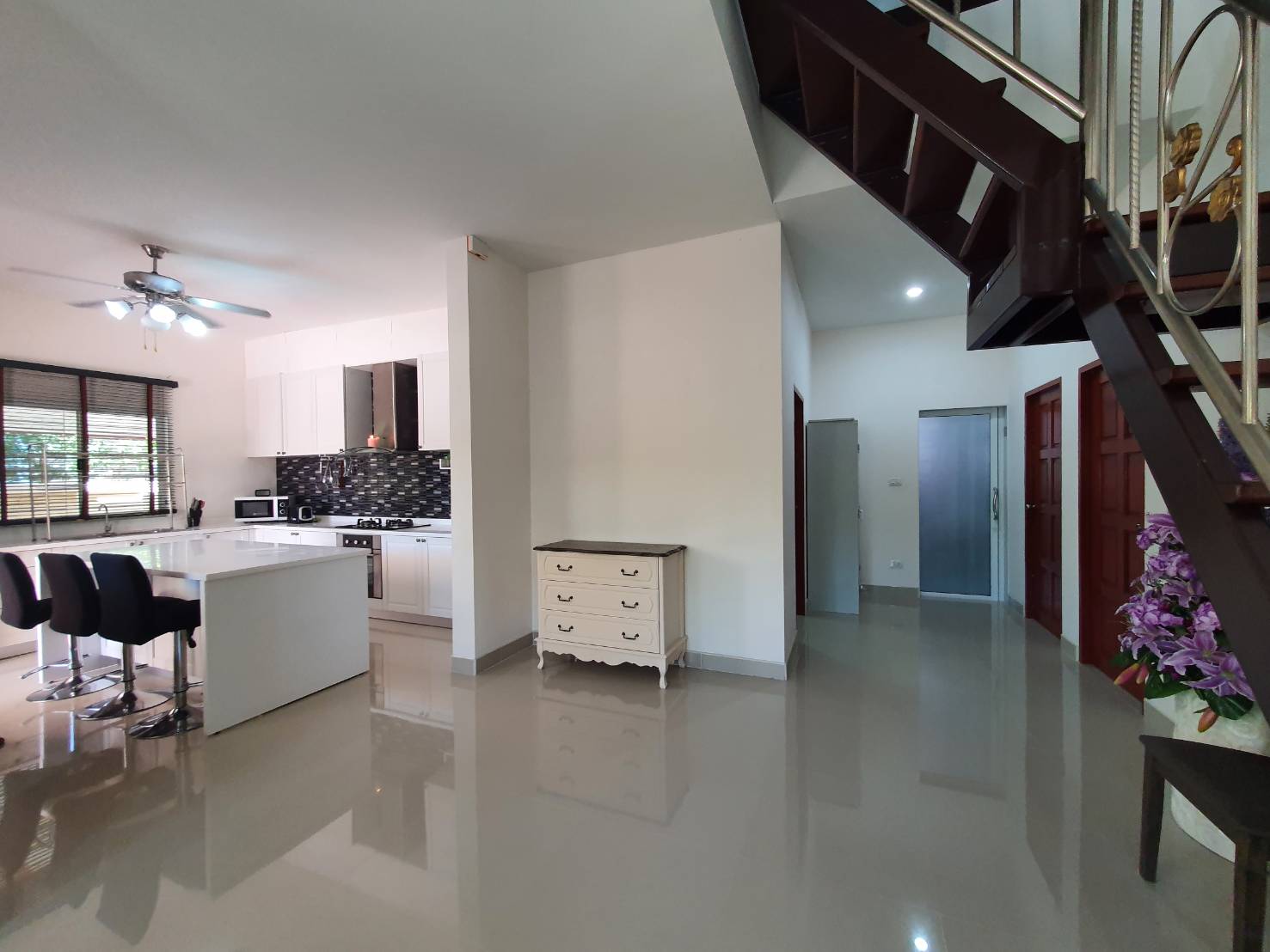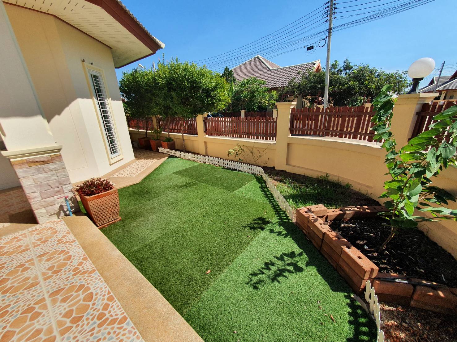 Rose Land & House Village This is a 3 bedrooms house located just off Highway 7, and very easy to access to Pattaya City and Highway 36 . The total of plot size of 107 Wah² (428 M²) this house is in the corner have a good size of garden and have a storage room outside the house. The house has an open plan living and dining area, comes with a fitted European kitchen with an oven. Master bedroom with en-suite, full air conditioning throughout, and washing machine. It also features a private landscaped garden, covered car parking, and patio area. The village well maintenance 24-hour security, wide roads, fitness room and a large communal pool. It is offered for long term rent 12 months contract with a 1-month security deposit. For more informationor viewing please contact us.